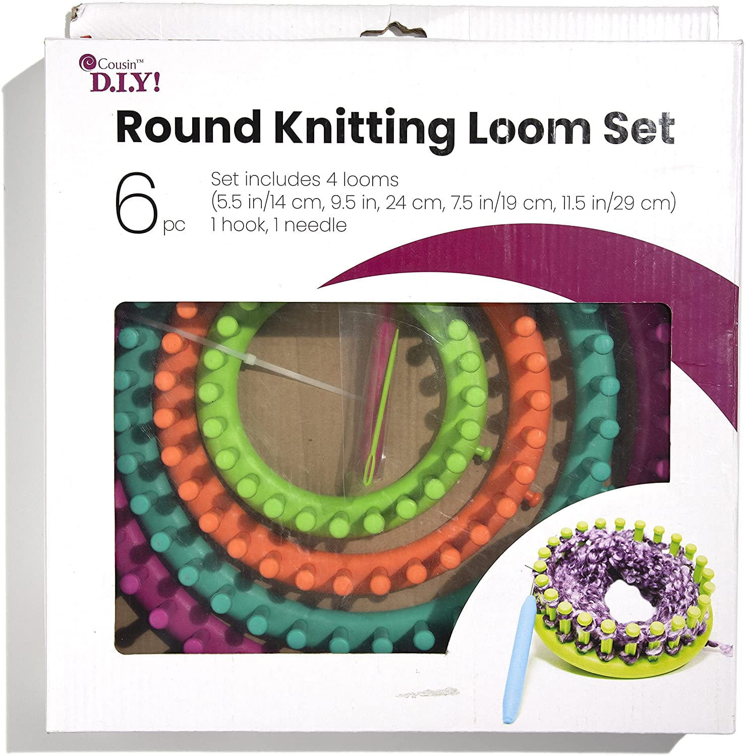 Cousin Diy Easy Knitting Round Loom Set With Hook Needle And 4 Knitting Loom Sizes Walmart Com